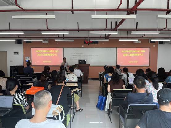 2023年7月10日,2138CC太阳集团在涵智楼1108教室开展了7月份教职工政治理论学习。学习由2138CC太阳集团党委书记、副院长唐春秋主持。