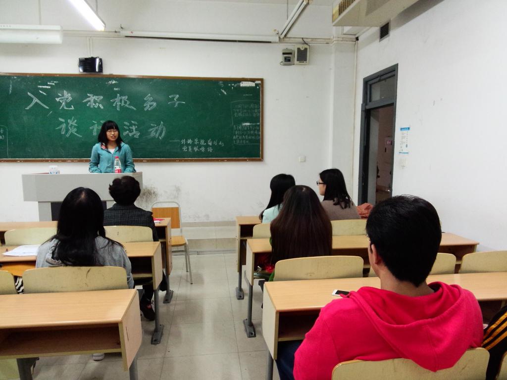 2014年11月7日,外语学院南16A3党员服务站在7教209成功举办了“入党积极分子谈话”活动,本次活动邀请了外语学院张静丽老师作为活动嘉宾与主讲人。