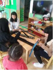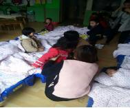 活动于下午两点半开始,志愿者们由爱心助学部部长统一带队,分成不同小组进行志愿服务活动。志愿活动开始的时间正值小朋友们午觉起床,大家首先亲切地和小朋友们交流、问候以化解生疏,一阵寒暄后,小朋友们也渐渐的和志愿者们打成一片。在温馨和谐的氛围中,同学们耐心又温柔地帮小朋友们穿衣,梳头,叠被子。梳洗完毕并照顾他们吃完小点心后,大家开始和小朋友们一同制作漂亮的手工作品来锻炼小朋友们的动手能力。志愿者们先帮助小朋友们在颜色不同的卡纸上画好各种各样他们喜欢的卡通人物,然后再进行剪裁,粘贴等。接着同学们又分工合作完成了照片张贴栏的美化,游戏区的窗帘布置以及制作卡通智力图片等等一系列事情。虽然这都是些简单的琐事,但志愿者们热情饱满,毫不怠慢。最后,同学们一同清理了手工制作后的残余垃圾,将房间收拾干净。下午5:30,活动宣告结束,志愿者和小朋友们一一道别。