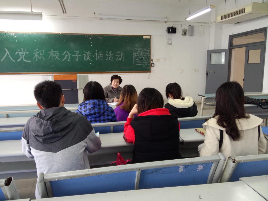 为了让学院入党积极分子更加系统地学习中国共产党的先进科学理论,提高自身对党的认识,发挥更加积极的带头作用,外语学院南16A3党员服务站组织部于2014年11月20日下午14点30分在7教313举办了本学期第二次“入党积极分子谈话”活动。外语学院张静丽老师作为本次活动的嘉宾与大二各班入党积极分子进行了深刻的谈话。