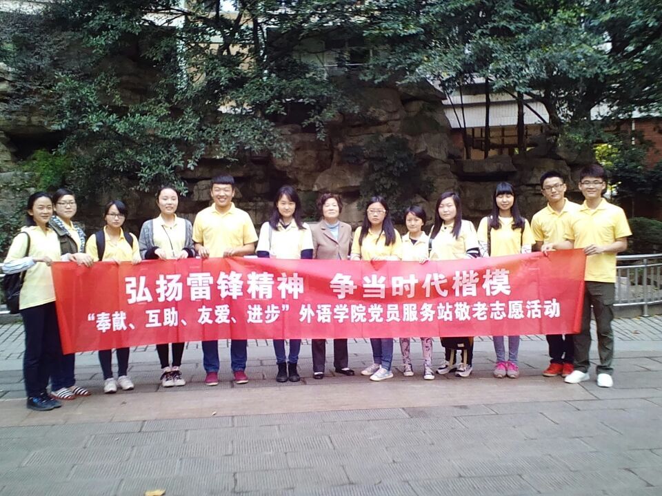 三月春风送温暖,学习雷锋树新风。万物复苏的三月,我们迎来了一年一度的学雷锋月活动。2015年3月28日下午,外语学院南16A3党员服务站通宣部积极响应学校“传承雷锋精神,弘扬中华民族尊老爱幼传统美德”的号召,在学府苑进行了以“弘扬雷锋精神,争当时代楷模”为主题的青年志愿者服务活动。