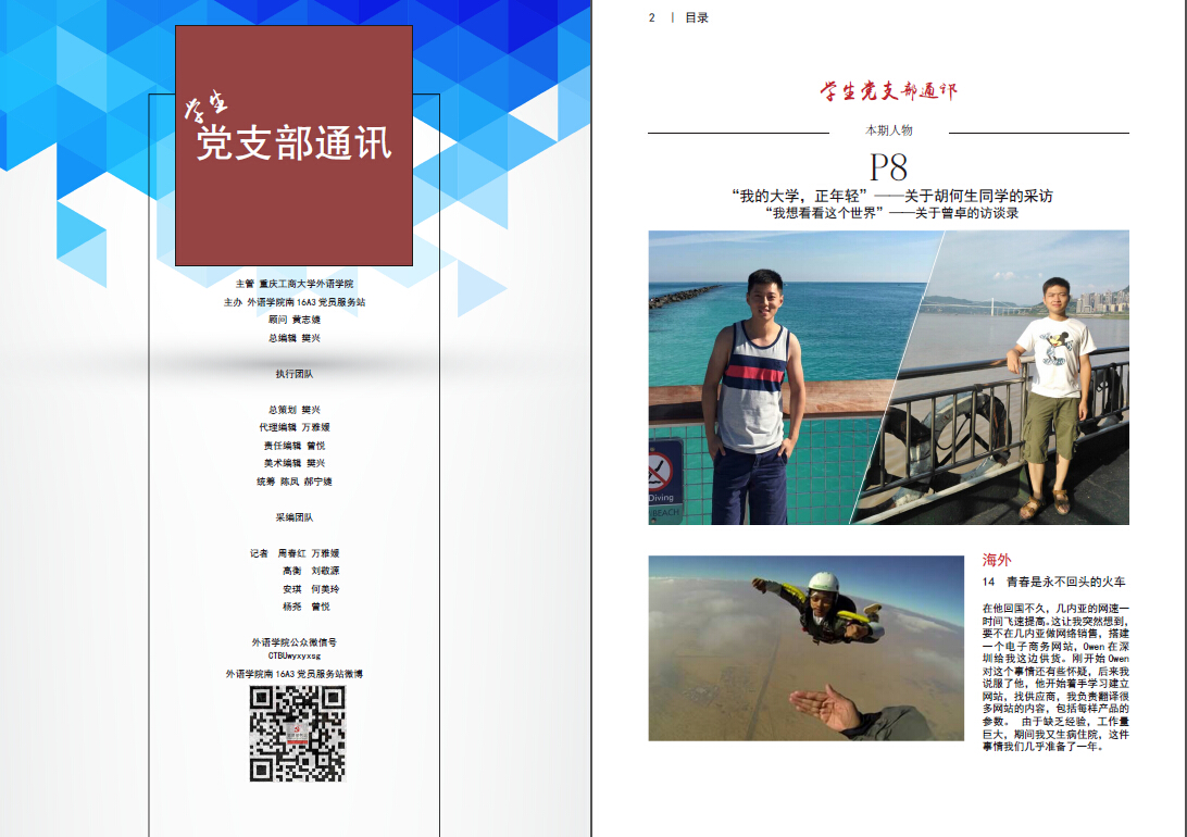 2015年5月27日,外语学院南16A3党员服务站从多方位解读“廉政建设”、“学院内部文化建设”等重要思想内容的期刊《学生党支部通讯》成功出刊,并顺利发放到各个班级。