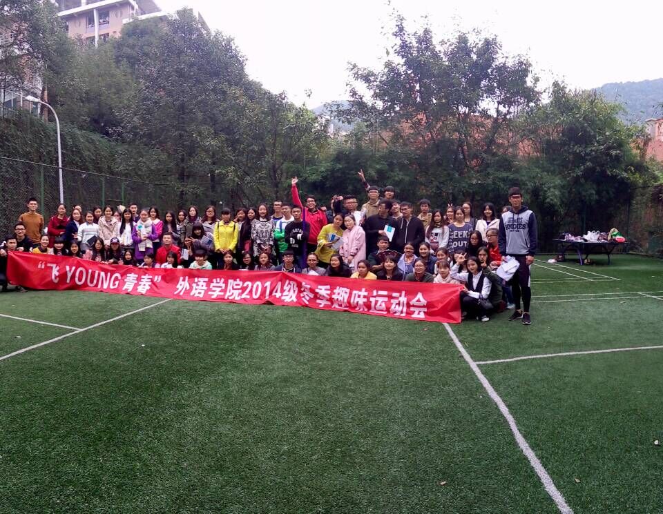2015年11月27日,外语学院2014级一次别开生面的趣味运动会在田家炳羽毛球场如火如荼地举行。2014级辅导员冉永琴老师出席并担任本次运动会的总裁判长,裁判由来自法语二班的刘瑜珂、刘纯璐同学担任,该班的李雪同学担任计时员。外语学院2014级全体同学热情高涨,积极参加了此次活动。