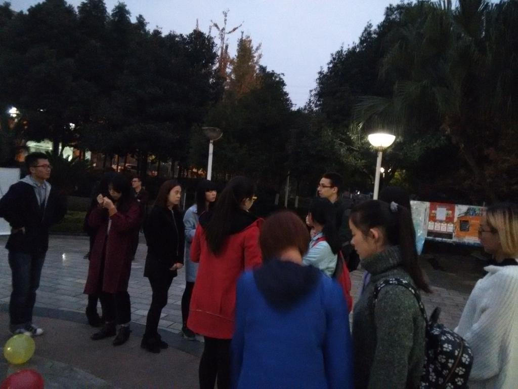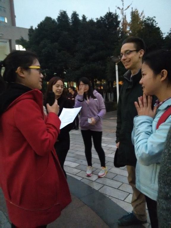为给广大英语学习爱好者提供交流平台,营造浓厚的学习氛围,2015年12月10日18:00,外语学院分团委学生会纪检部主办的第九期英语角在主校周末文化广场如期举行,外教Justin、Kevin出席了此次活动,本次英语角吸引了众多热爱英语的同学参与。