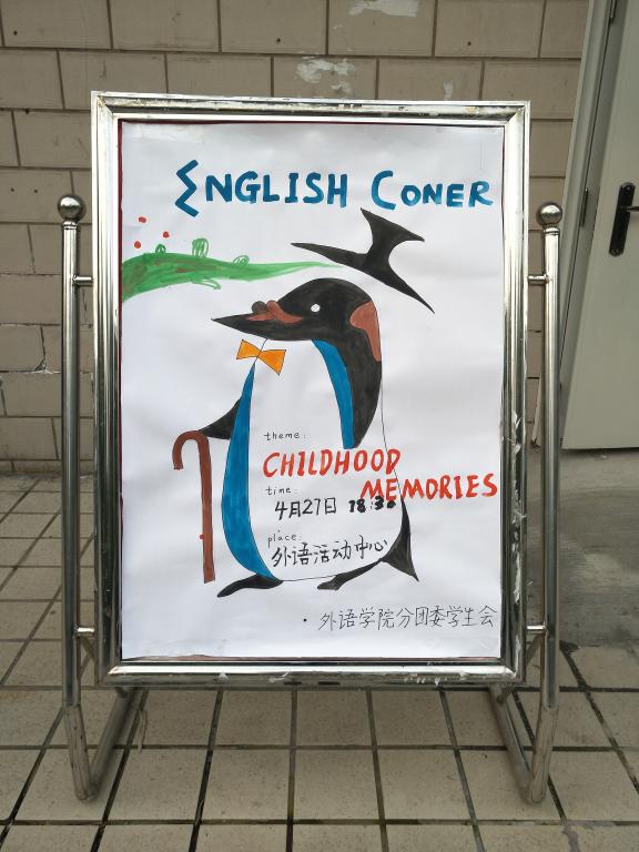 2016年4月27日18时30分,由外语学院分团委学生会素拓部主办、体育部协办的第17期英语角在外语活动中心成功举办。本次英语角的主题为“Childhood Memories Forever!”。外教Justin,Buzz,Sam,Stephanie作为特别来宾,素拓部部长王丽丹同学主持此次活动,各学院英语爱好者积极参与本期英语角,并分享自己的童年趣事。