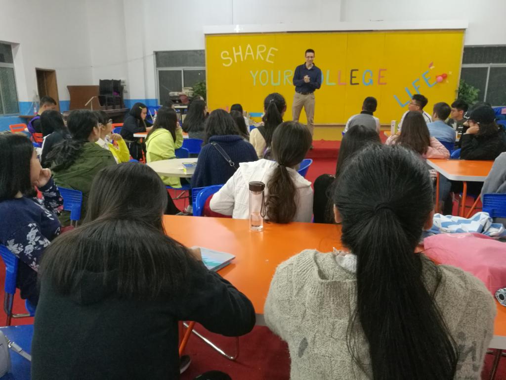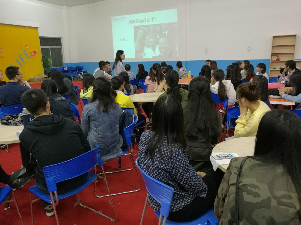 2016年10月12 日18:00时,外语学院第二十一期英语角“从雅思的全世界路过”在外语活动中心顺利举办。来自商英二班的雷安嫚同学担任主持,外教Justin Thomas、Sam老师以及Nancy老师作为嘉宾出席,来自全校的众多英语爱好者积极参与本次活动。本次活动由外语学院分团委学生会权益部主办、文艺部协办。