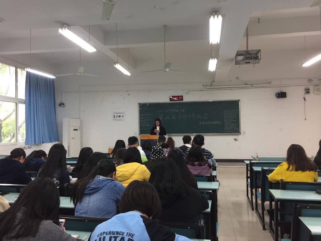 2016年11月17日12:40,外语学院分团委学生会2016-2017学年第一学年第二次干部干事大会在兰花湖片区广智楼20213顺利召开。外语学院分团委副书记刘昊、学生会主席吴丽、副主席陈治雪以及全体干部干事参与此次大会,会议由分团委副书记刘昊主持。