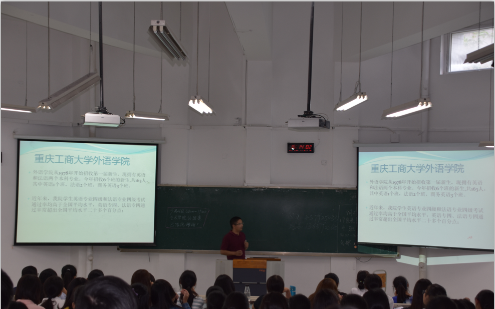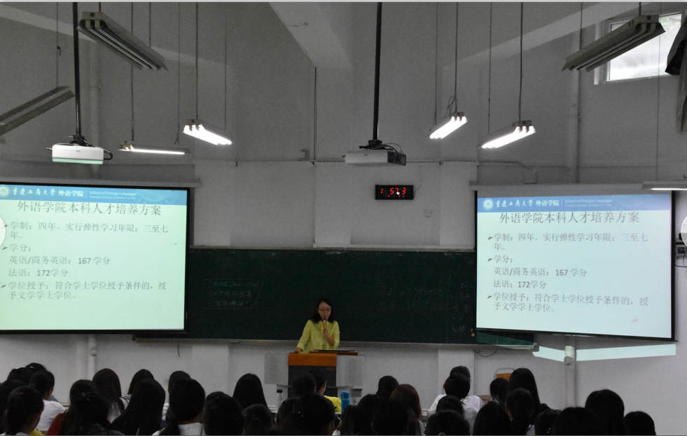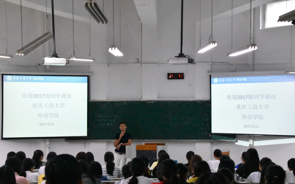 2017年9月21日下午2:30,外语学院2017级新生专业教育在兰花湖片区广智楼20204教室隆重举行。本次新生入学教育活动由外语学院2017级辅导员黄志婕老师主持,外语学院党总支书记陈晓东、院长戴运财、副院长周琳、党总支副书记陆嘉等学院领导出席了本次教育活动。