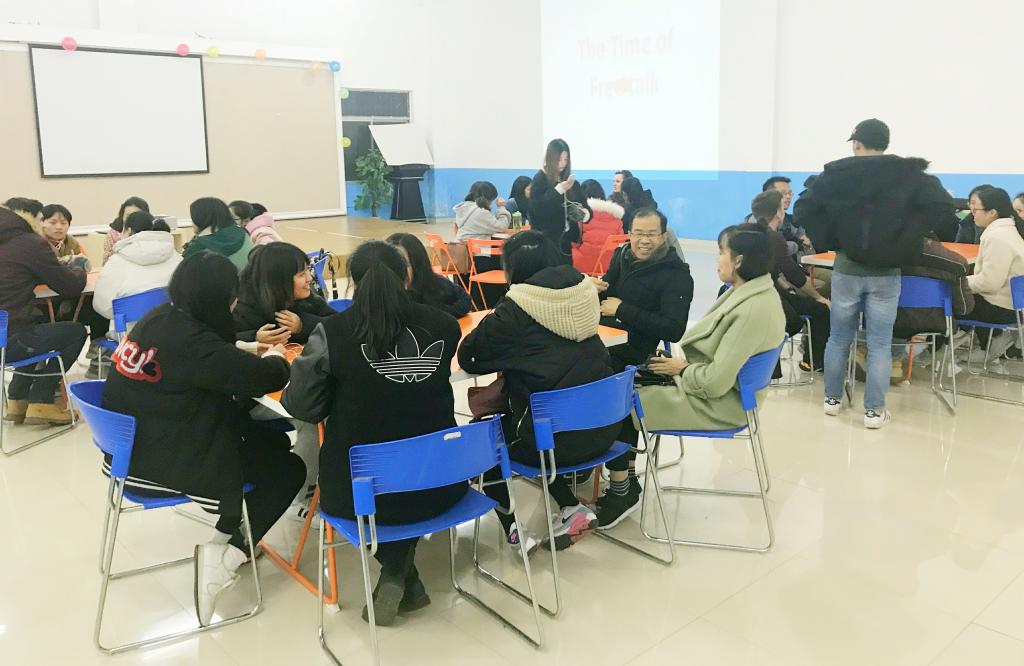 2017年12月19日下午6点30分,重庆工商大学外语学院2017-2018学年第50期英语角在南岸校区外语活动中心成功举行。本次英语角由外语学院分团委学生会素拓部主办,体育部协办。叶凌菲同学担任主持人,外教Brittany、Sam、Jonathan受邀参与此次活动。