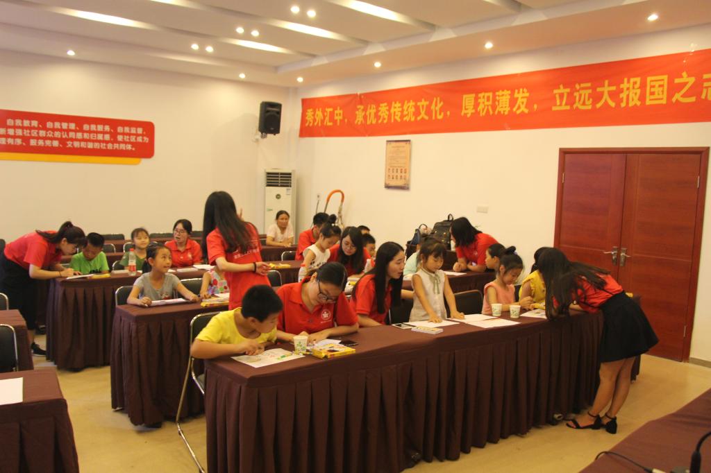 为了积极响党的号召,迎接十九大的胜利召开,重庆工商大学外语学院到茶园同景社区开展了以弘扬传统文化与外语专业特色相结合的大学生暑期社会实践活动。此次社会实践活动以“秀外汇中,传承优秀文化,厚积薄发,立远大报国之志”为主题,开设一些趣味生动的课程。