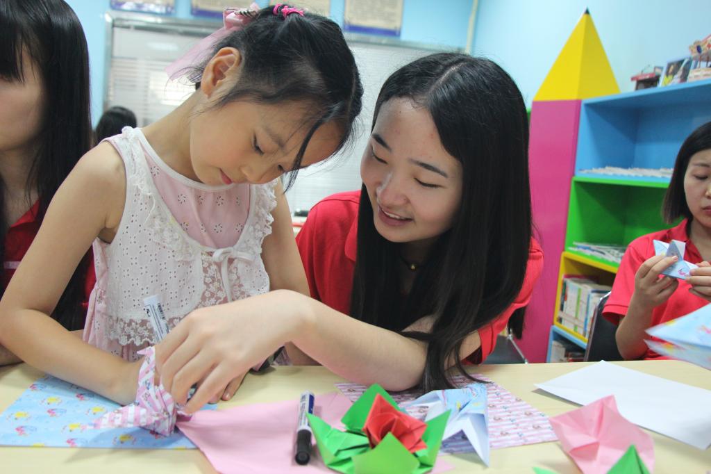 此次社会实践活动中小朋友年龄差异较大,面对这样的情况,我们的志愿者在课程设置上也别出心裁,运用具有特色的教学理念授课。不仅融入一些我国的传统文化,更是将我们外语学院关于“外语”方面的特色也结合了起来。将中西方文化的融合、生动地在课堂上展现出来。