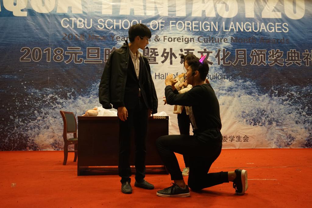 除了精彩夺目的节目,此次晚会上,还有激动人心的颁奖环节。周琳教授和陆嘉书记分别为获得林肯选修课结业证书的同学以及在学风建设先进个人和集体评选中的荣获标兵称号的个人和集体颁发荣誉证书;邹莉老师和罗媛媛老师分别为在外语文化月之写作、翻译和听写比赛以及法语歌曲暨戏剧大赛中获奖的同学颁发奖状。希望同学们在新的一年里继续努力,争做优秀工商外语人。