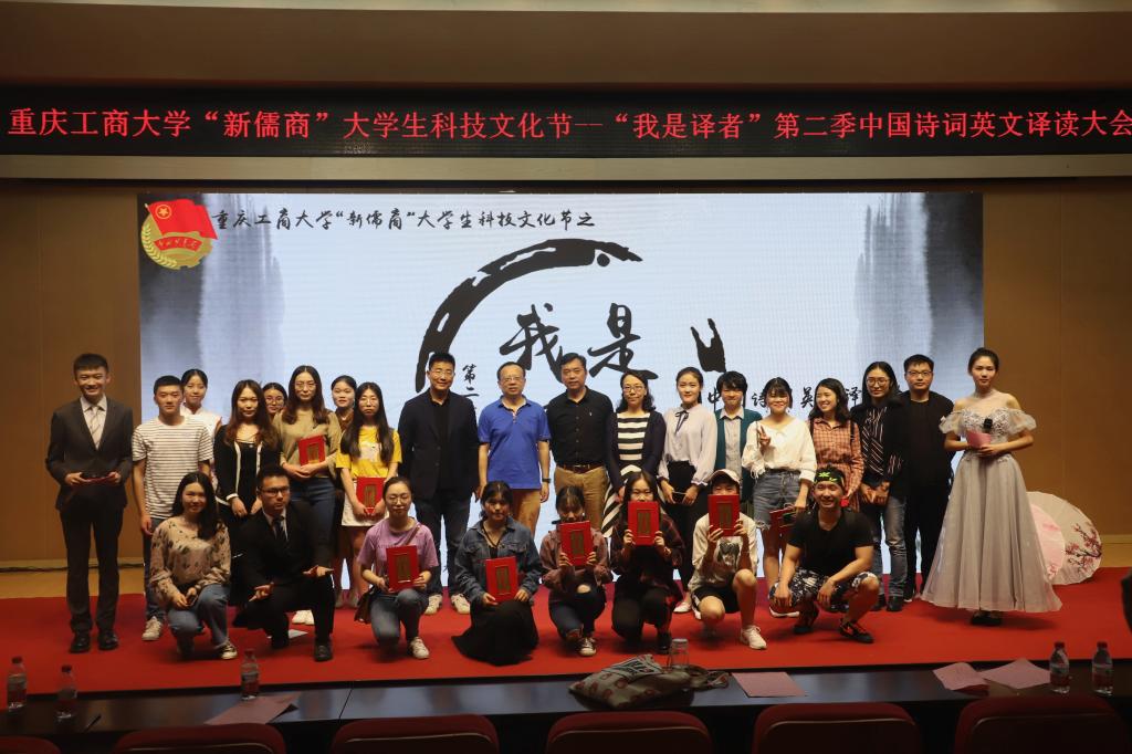 2018年4月20日,由共青团重庆工商大学委员会主办、外语学院分团委承办的重庆工商大学“新儒商"大学生科技文化节之“我是译者”第二季中国诗词英文译读大会在田家炳209报告厅成功举办。重庆工商大学学工部部长、学生处石世明处长、外语学院党总支陈晓东书记、外语学院副院长周琳、外语学院党总支副书记陆嘉出席了本次活动,外语学院刘勇老师也作为点评嘉宾参加了活动。