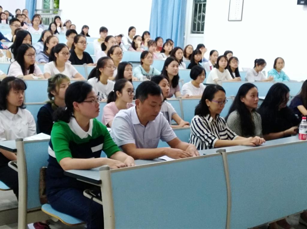 丹桂飘香工商大,又是一年迎新时。9月7日,外语学院2018级新生开学典礼暨新生入学教育在兰花湖校区广智楼20111隆重举行。学院党总支书记陈晓东,院长戴运财,副院长周琳,党总支副书记程亚,英语系专业老师陈康,法语系专业老师罗媛媛、汪越骐,学团办主任吴欢欢,分团委书记黄志婕,党员服务站指导老师丁亮,教务办老师王露茜应邀参加本次活动。
