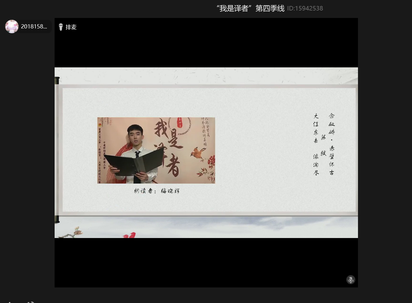 “我是译者”活动自2017年至今已连续开展四季,本次活动共收到全校各专业同学的作品三百余份,最终评选出获奖作品24份。活动伊始,开场视频向观众们呈现了数百年来为中华民族独立、为新中国建设而做出贡献的英雄们,有“砍头不要紧,只要主义真”的夏明翰;有四川木里火灾救援牺牲的消防战士;有抗击新冠肺炎疫情的医护人员……本次活动意通过诗词表达对英雄的歌颂和赞美。