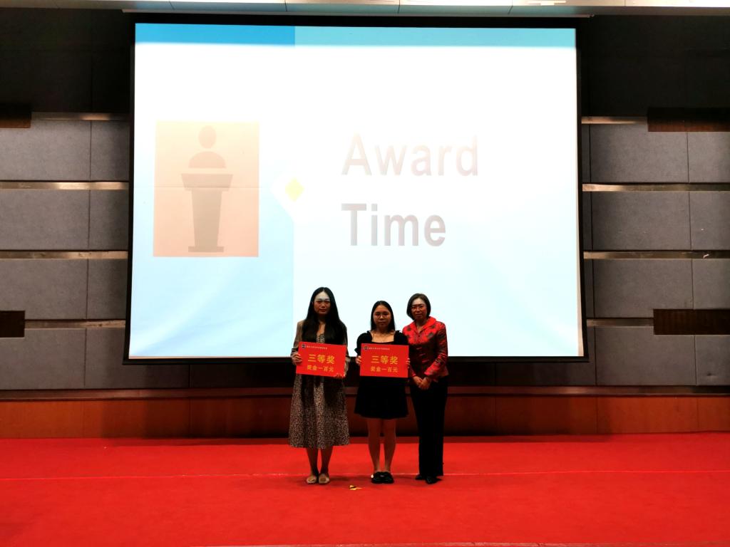 决赛包含定题演讲和即兴演讲两个环节。参赛选手认真准备,全力以赴,赛出水平,赛出精彩。比赛现场气氛一度高涨,赢得了阵阵掌声。经过激烈角逐,最终评选出一等奖一名,二等奖两名,三等奖两名,优秀奖四名。