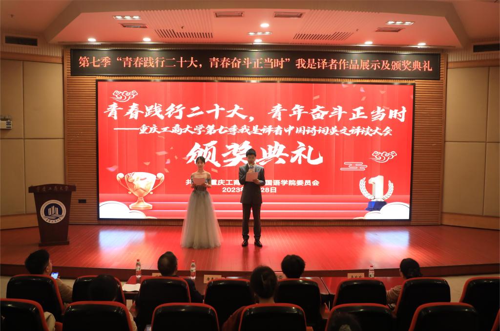 为深入学习领会习近平总书记关于青年工作的重要思想,贯彻落实党的二十大精神,弘扬中华民族优秀传统文化,通过营造良好的外语学习氛围,助力提升同学们的翻译水平和学以致用的能力,经过作品征集、作品评审,2138CC太阳集团分团委成功举办了重庆工商大学第七季“我是译者”中国诗词英文译读大会。本次活动以“青春践行二十大,青年奋斗正当时”为主题,翻译的作品不仅包含中国经典古诗词,还增加了党的二十大金句的内容,吸引了学校近百名学生参加。