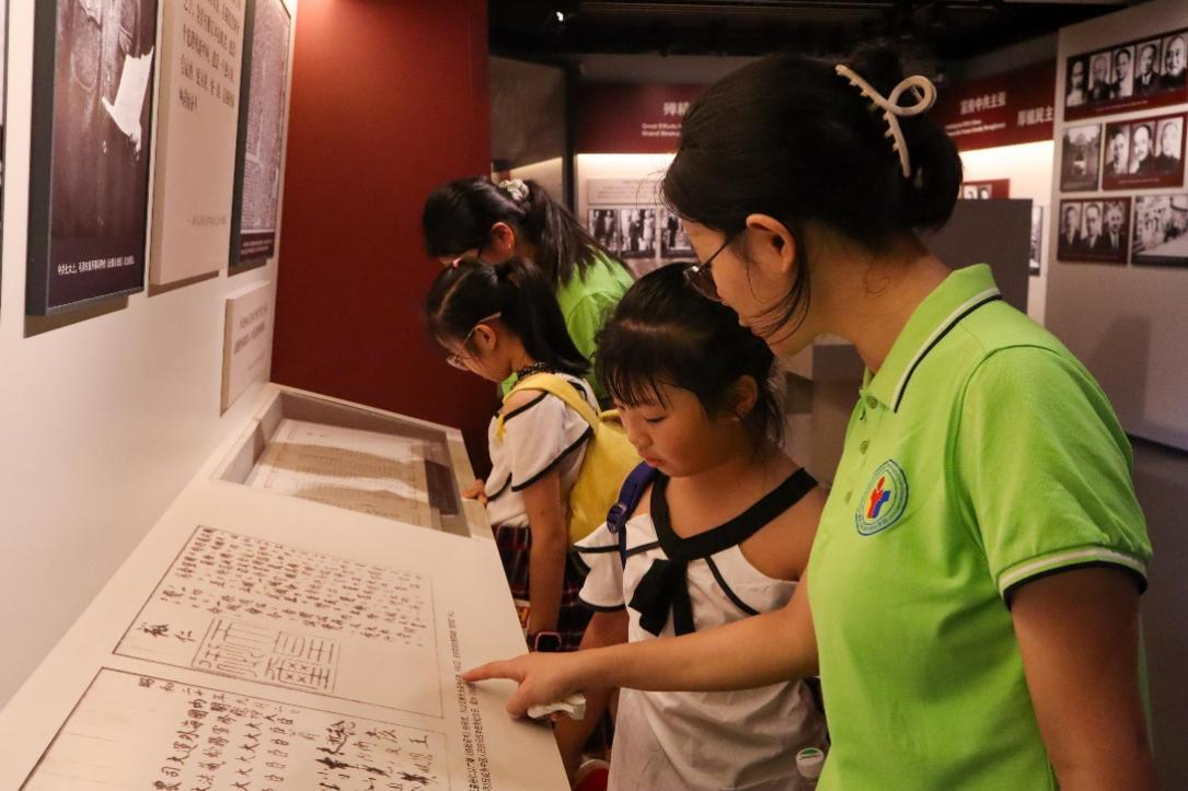 走出周公馆,实践团和小朋友们又沿着中山四路来到了桂园。这是一个独立的小院,大门临街。当年张治中在此入住时,他亲手种下桂花树,并用父亲的名字“桂徽”,将此小院命名为“桂园”。桂园正是著名的《双十协定》签署地,2001年被列为第五批全国重点文物保护单位。在这里有着众多关于重庆谈判的相关记载,室内展板资料上详细地记录着桂园当年的红色岁月。通过亲身体验和参观游览,实践团感受到了毛泽东、周恩来等伟大领袖在桂园工作战斗的历史,深刻认识到了重庆谈判的重要成果。