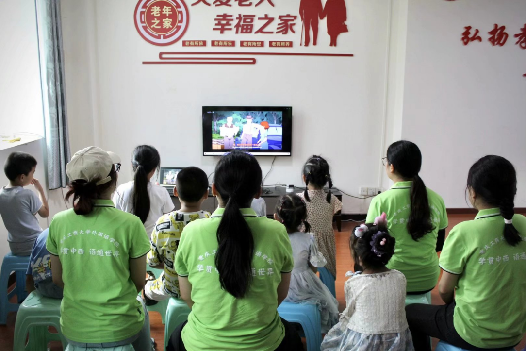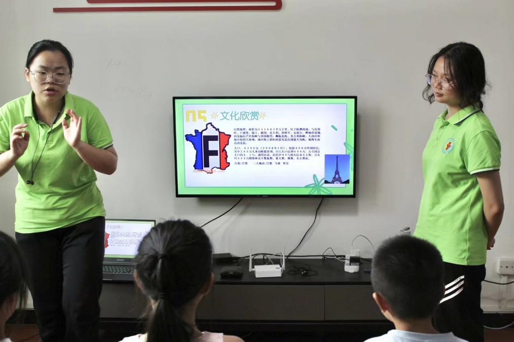 语言媒介搭桥梁,传播中国好声音。在趣味文化分享环节,服务队成员播放了法语电影片段,现场的孩子们深深地沉迷于《小王子》孩童的世界,感受到《丁丁历险记》机智勇敢小侦探的魅力,从《基督山伯爵》体会到人性的正义善良。服务队成员谷蕊分享了不同国家的文化,孩子们在服务队的组织带领下,也积极分享了自己熟知的中国与法国的著名建筑,感受文化差异。服务队成员与孩子们一起齐唱国歌,告诉孩子们将中国文化传播出去是新时代青年的使命,也鼓励孩子们积极学习外语,增长语言交流本领。