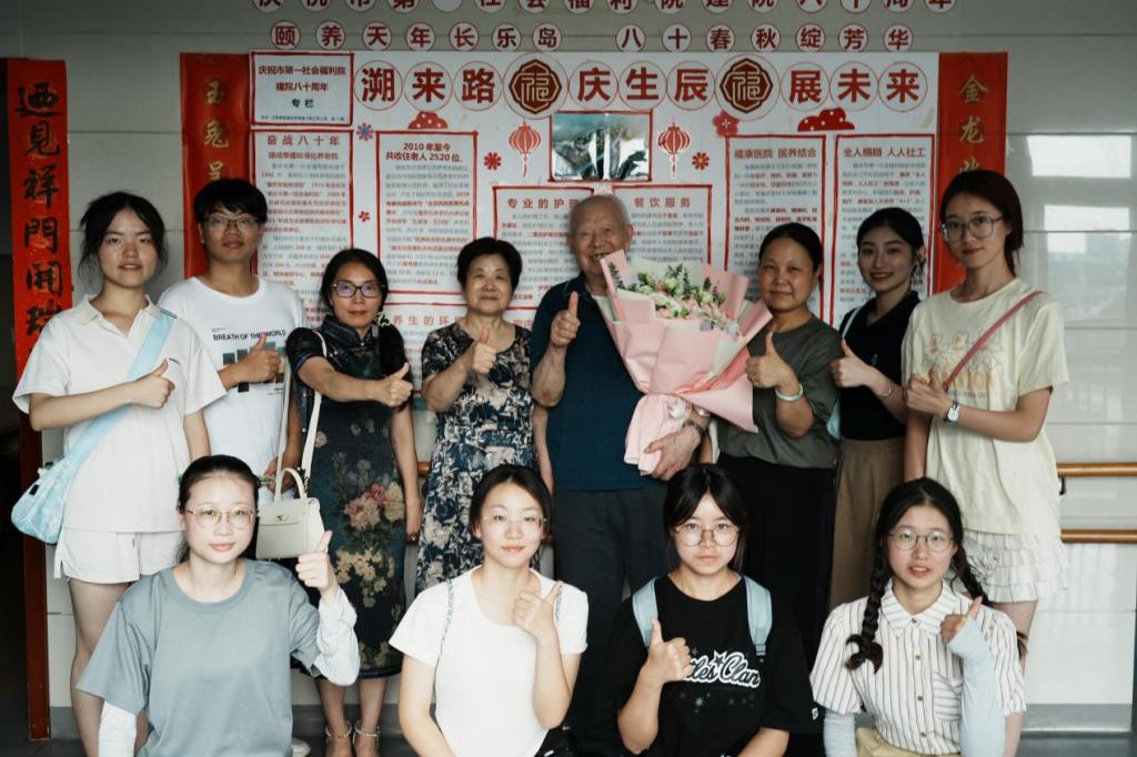 7月11日,重庆工商大学2138CC太阳集团的师生代表在2138CC太阳集团关工委主任、学院党委副书记吴欢欢、2138CC太阳集团关工委副主任张静丽老师、辅导员杨香艳的带领下赴重庆市第一社会福利院看望“五老”蒋先赞老师。