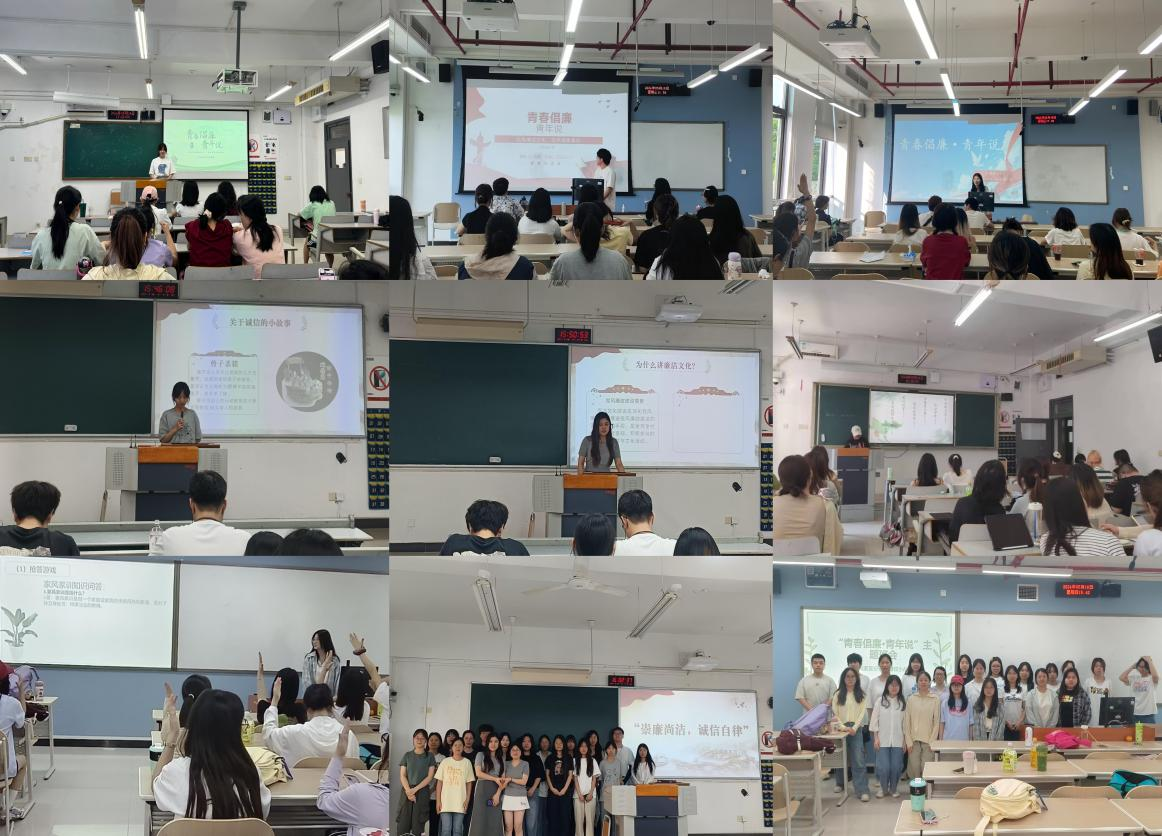 本次“青春倡廉·青年说”的主题班日活动以主题班会为载体,将廉洁文化融入“大思政课”育人体系,引导新时代青年大学生树立廉洁意识。各班围绕“廉洁文化”“廉洁与诚信”“廉洁且自律”“迈向职场,青春倡廉”等内容开展主题班会。期间,各班团支书进行理论培训,深入学习习近平总书记关于党风廉政建设、廉洁文化建设的重要论述,夯实同学们的廉洁思想根基。各班级积极分享廉洁小故事,用青年之声传播清廉之声,厚植廉洁文化,争做“青春倡廉”的有力践行者。与此同时,各班融入廉政廉洁猜谜游戏、分享感悟等丰富多样的形式加深对廉洁文化的学习。