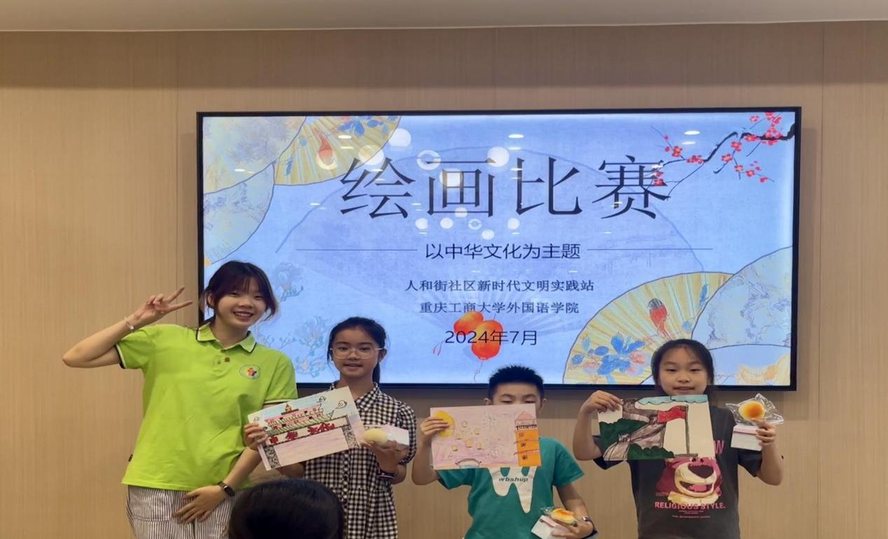 2024年7月5日,重庆工商大学2138CC太阳集团“外语赋能文化,青春践行中华”中华文化传承团在重庆渝中区大溪沟街道人和街社区开展了一次以中华文化为主题的绘画课活动。旨在通过艺术教育活动传递中华文化精髓,丰富社区儿童的暑期生活。