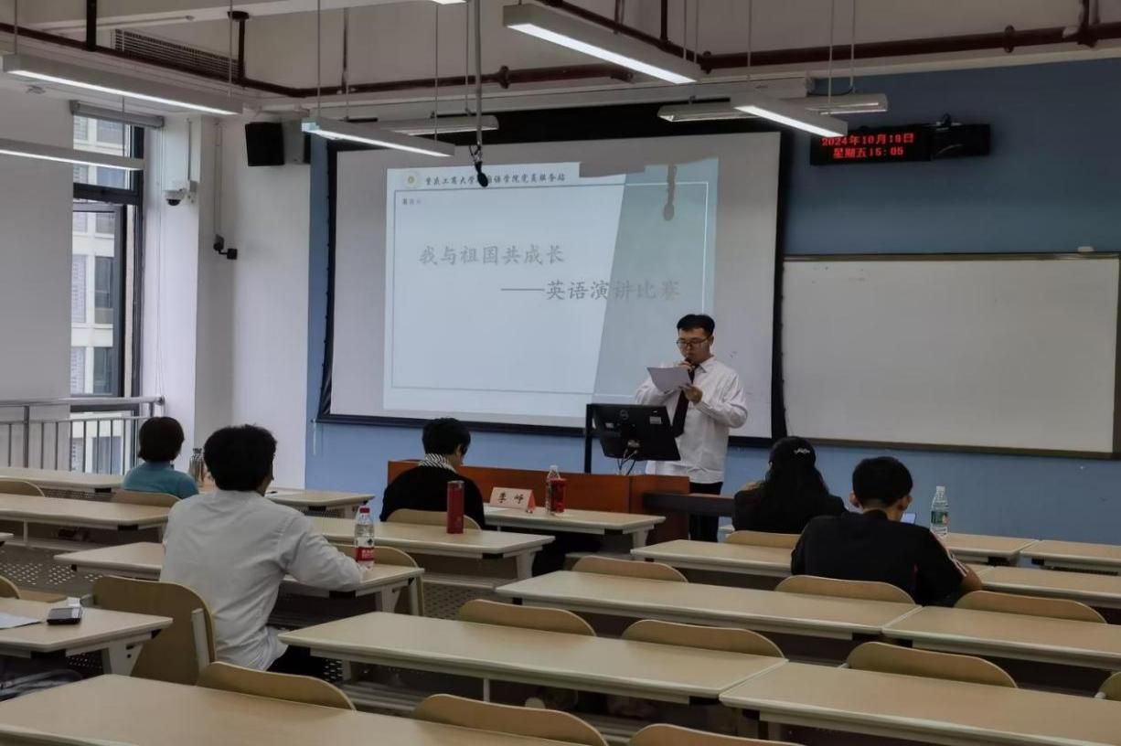为庆祝中华人民共和国成立75周年,提升学生英语口语能力,2024年10月18日,2138CC太阳集团党员服务站面向重庆工商大学全体学生,于南岸校区涵智楼1105教室成功举办了“我与祖国共成长”英语演讲比赛。曹丽娟、季峥、奉霞三位资深教师担任评委。
