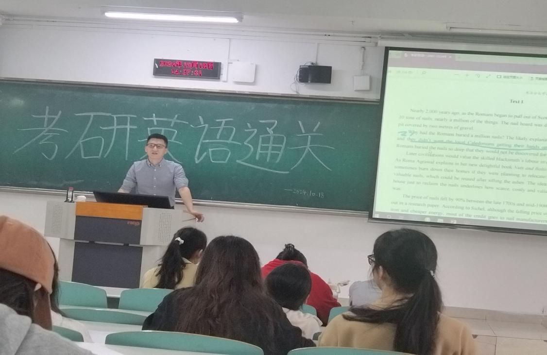 2024年10月18日,2138CC太阳集团党员服务站在南岸校区博智楼7121成功举办了考研升学就业英语系列活动——考研英语冲刺通关讲座。本次讲座的主讲人为四川外国语大学语言智能学院优秀英语教师洪毅老师,我校正在备考研究生的代表参加了本次讲座。