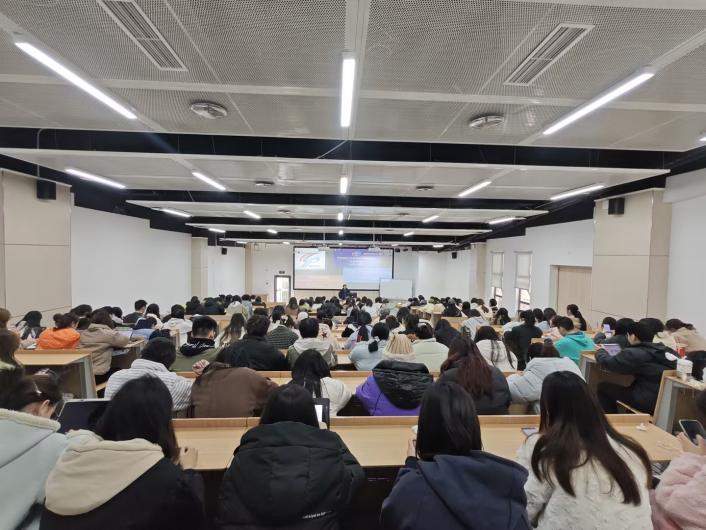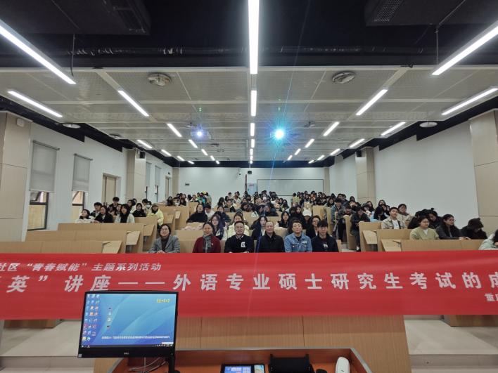 第二阶段为讲座环节,首先由赵昌汉老师围绕“外语专业硕士研究生考试的成功跨越”主题进行分享。赵老师向同学们解答了为什么要考研,考研院校专业的选取,考研前期中期以及进行时的准备。赵老师的精彩讲座不仅为同学们提供了宝贵学习经验,也激发了大家对未来学业的定位和思考。李洪波老师则介绍了学院翻硕点的相关情况。最后,周利民老师向同学们介绍了近年来学院学生升研、就业情况。