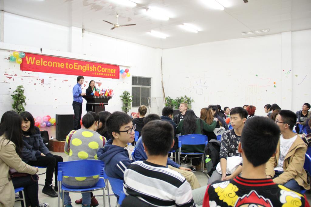 2014年11月6日晚,本学期第五期“EnglishCorner”在外语活动中心举行。本期“英语角”由外语学院分团委学生会义工部主办、组织部协办。此次英语角由外语学院英语专业二年级的张祥千同学和其外国好友Jeremy共同主持。