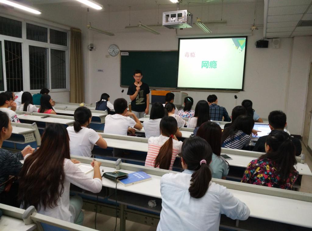 活动伊始,同学们带来的主题话剧表演----《转身拥抱阳光》那诙谐幽默的台词、精准到位的肢体语言、引人入胜的剧情将话剧的精髓发挥得淋漓尽致,同时,大家情不自禁的开怀大笑和雷鸣般的掌声也很好地带动了全场的气氛。接下来,大自委“朋辈心理帮扶团”成员给大家进行了主题为“再见,网瘾”的心理知识讲解。贴近生活的主题深深地吸引了同学们的兴趣,大家积极参与互动、提出自己的看法并讨论摆脱网瘾的有效解决方法。然后,在帮扶团另一位成员的组织下抽取观众进行了两轮紧张刺激的游戏。这两场游戏不仅增进了同学间的相互了解,也让同学们更透彻地理解了相关心理知识。最后,主持人播放了视频《复旦投毒之殇》。这段视频,不仅让大家了解到了心理健康的重要性,也让这次活动在同学们的心里留下了更加深刻的印象。