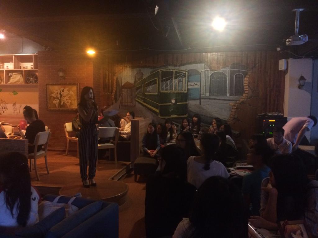 为了提高法语专业学生学习兴趣,加强中法文化交流与融合,由外语学院法语系、外语学院分团委学生会、欧憬法语共同主办的中法饮食文化交流会于2015年4月20晚18:30在香樟林“星电影”咖啡厅成功举办。参加本次活动的有外语学院法语系主任胡新宇老师、欧憬法语Cici和Emma老师以及外语学院法语专业12、13级学生。