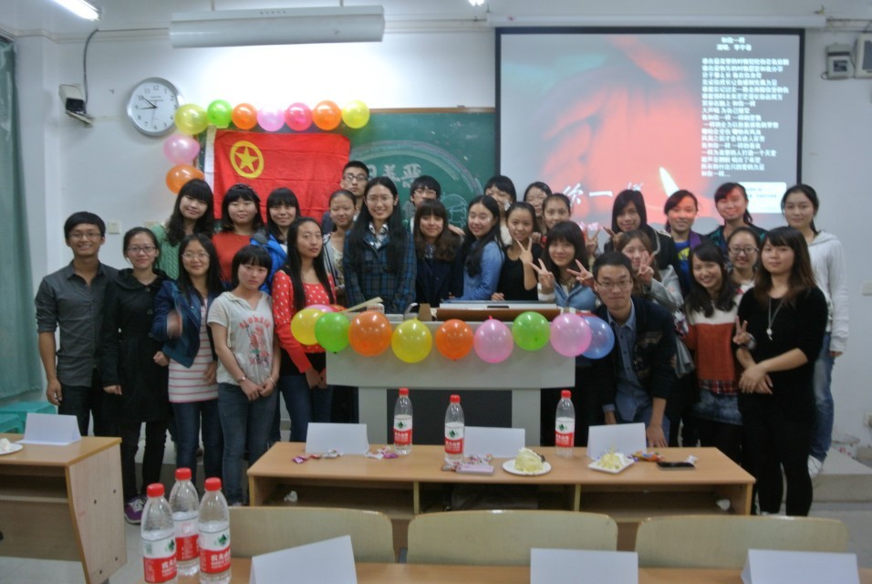 27名来自不同地方的同学聚集在一起,组成了2013级商务英语支部这个温暖有爱的大家庭,每一位成员都在为这个家的成长而不断努力着。在学习上,每一位成员都积极进取、笃定向前,积极创建优良学风;在生活中,大家互相照顾,互相帮助,对待彼此如兄弟姐妹;在活动中,大家积极参与,集体荣誉感强,班级凝聚力高。两年的时间以来,大家一起哭过,笑过,但我们依然执着,尽情挥洒着我们的才华,努力实现我们的梦想,施展我们的抱负。