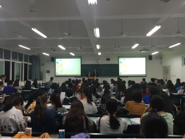晚上6点30分,随着一段激情澎湃的招新视频,招新活动正式拉开帷幕。学生会与党站通宣部的部长分别担任本次招新大会的主持人,每个部门结合自己精心制作的创意PPT和视频介绍各自的部门工作和用人要求。精彩的介绍和简单的互动后,现场气氛随着新同学们的热情不断升温。党员服务站三位站长朱增艳、陈凤和黎盼对党站进行简略的介绍后,播放的一段关于党站的温馨视频,极大地引起了新生对首次接触的“党员服务站”的浓厚兴趣。党站的招新宣讲会之后是积极报名阶段,紧接着是一个初步面试过程。各部门部长都对报名该部门的新生进行了一些必要问题的询问,也耐心地解答了新生们所提出的疑惑,让他们对本部门有了更多的了解。活动结束后的现场的新生还迟迟不肯离去,围绕在部长和站长旁询问自己的面试结果,从中看出新生们对党员服务站抱有极大的热情与期待。