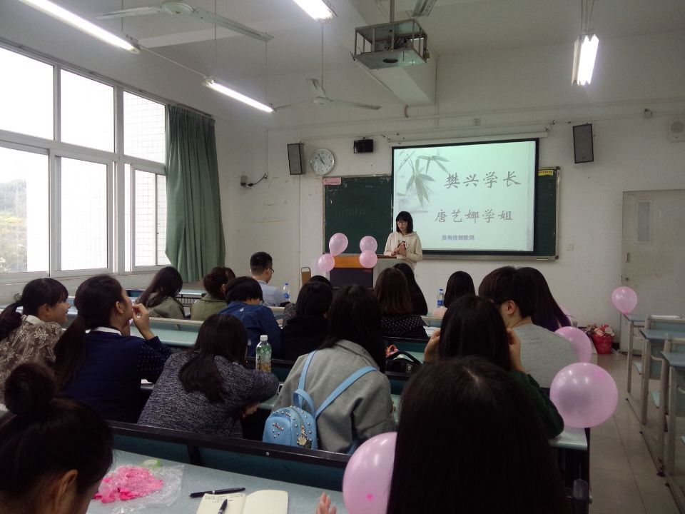 主持人罗媛以富有激情的开场白,为本次活动拉开了序幕。首先,主持人邀请樊兴同学分享学习经验。樊兴同学以一个有趣的话题吸引了同学们的注意力,并以此拓展开来,给我们讲述了学习法语的方法,并强调了听、说、读、写对于学习语言的重要性。与此同时,同学们也积极提问,问及到学习法语去非洲工资待遇,人生安全,利与弊时,樊兴同学也一一为同学们解答,全场氛围极其活跃。接着,唐艺娜同学给在场的新生们分享了一些关于考试方面的技巧,谈到了如何备考专业四级的方法,让我们深刻了解到了“温故而知新”“学如逆水行舟,不进则退”的含义。随后张雨诗追问的方式,来解答同学们对学习法语的疑难。例如“我们既要考英语四六级又要学习法语,如何处理两者”“怎样才能把法语说得快速流利?”等等,同学们都积极参与其中,各自心有所得。最后谢韦思为同学们介绍了学习法语的一些软件以及如何利用好这些软件,不仅拓宽了同学们的学习途径,而且丰富了同学们的知识。伴随着同学们的热烈掌声本次活动圆满结束。