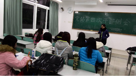 期末临近,为了进一步落实本学期党站的收尾工作和总结本学期的工作总结,外语学院南16A3党员服务站于2015年12月15日下午5点30在07113教室举行了第四次干部例会。出席本次例会的有站长陈凤、副站长朱增艳和黎盼,参加本次例会的有各部门的部长。
