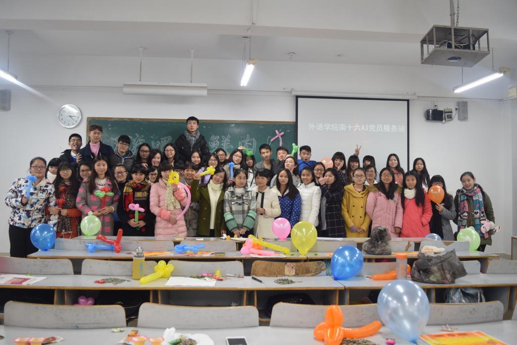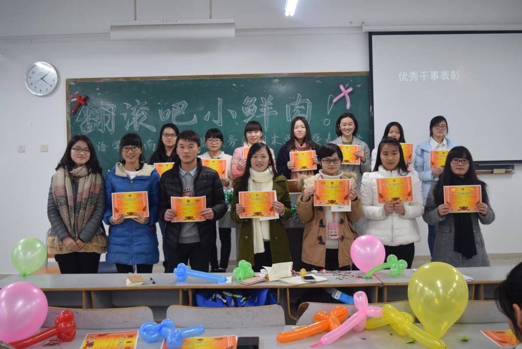 为了建设美丽党站,加深干部干事们的“大家庭意识”,2015年12月18日14:00,南16A3党员服务站期末总结表彰大会在博智楼07305教室举行。参加本次总结表彰大会的有指导老师王勇刚,站长陈凤、副站长朱增艳、黎盼以及全体部长和干事们。