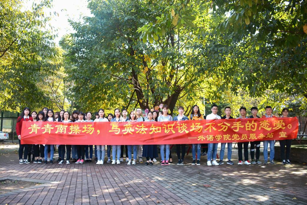3月31日下午,由外语学院党员服务站主办的英法知识游园会在主校南操场成功举行,参加此次活动的主要是大一大二入党积极分子以及外语学院各年级英法知识爱好者。