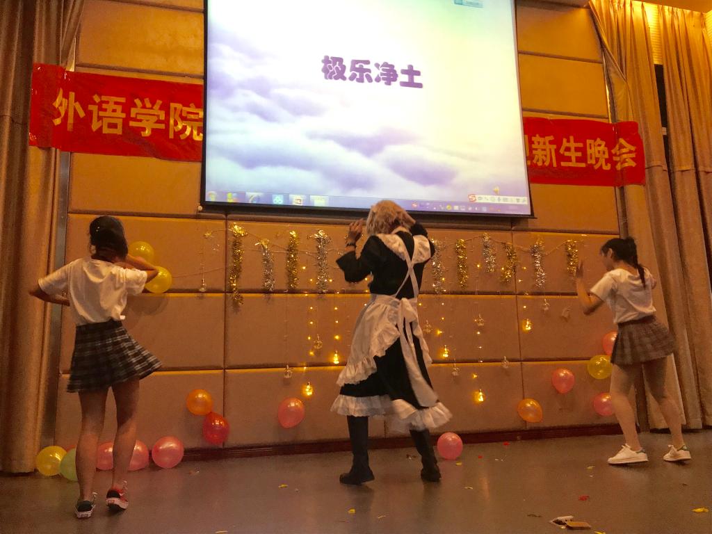 开场节目《喜帖街》迅速点燃了观众们的热情。接下来是戏剧爱好者们带来的舞台剧改编版《白雪公主》以及英文短剧《小红帽》,精美的服装,淳熟的演技,让在场观众叫好不断,仿佛进入了格林童话的梦幻世界。接下来的诗歌朗诵《以梦为马》和《The nymph's reply to the shepherd》则让观众们走出童话王国,投入诗文的怀抱,感受到朗诵者们坚韧而充满力量的内心。游戏环节,大家都积极地参与,气球的爆破声和同学们的嬉戏声此起彼伏,让现场气氛火热起来。