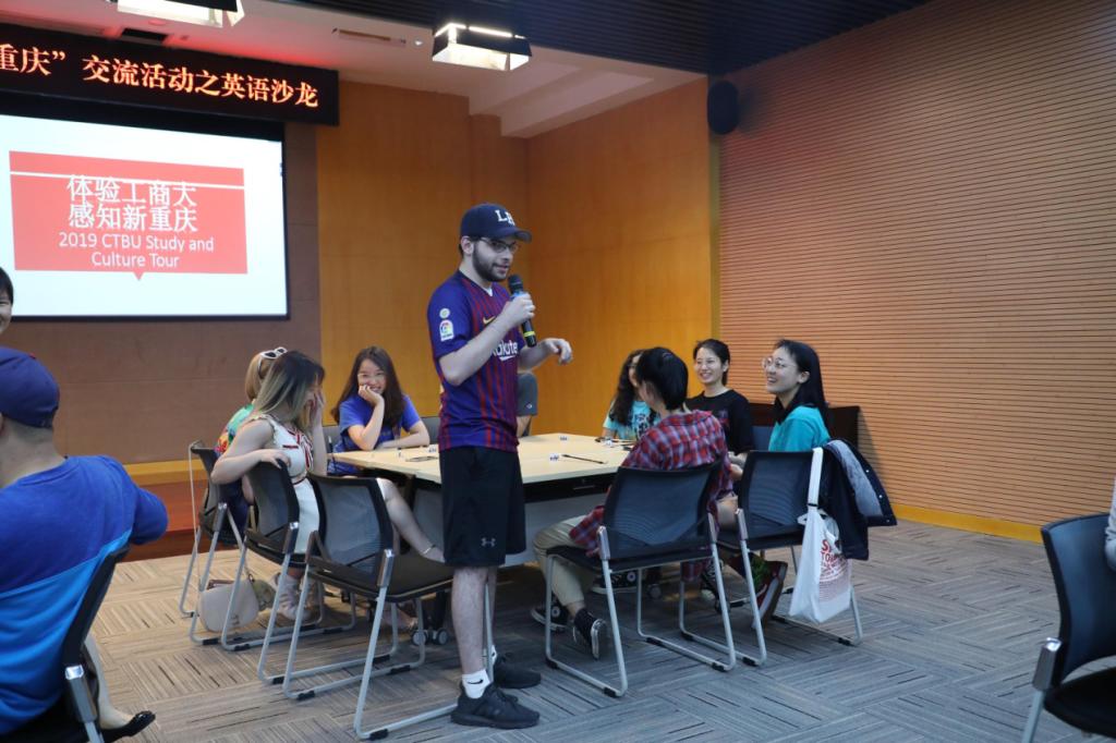 5月22日晚七点,由我校国际合作与交流处主办、外语学院分团委学生会承办的重庆工商大学国际交流文化月暨第十一届“体验工商大,感知新重庆”之英语沙龙在我校新图书馆多功能厅成功举行。来自11个国家的40余名外教、留学生和我校外语学院40名师生代表共同参与了此次英语沙龙。