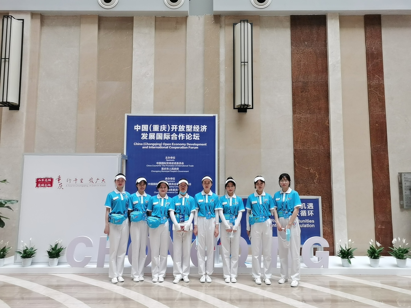 在志愿服务项目中,重庆工商大学2138CC太阳集团季峥老师带领2018级商务英语三班学生王惠阳、2019级商务英语三班学生顾凡杰等共计50名学生参与西洽会志愿服务工作,服务了包括开幕式组、展览组、签约组、外事组等近十个组别。参加志愿服务项目的师生们也纷纷表示收获颇丰。带队教师季峥大学时曾经参与四川国际投资招商洽谈会志愿者服务工作,在工作非常繁忙的情况下她依然欣然接受此次带队工作。在前期志愿者的筛选过程中,她和同事们一起给学生们作动员,提要求,讲纪律;在培训和誓师过程中,她和学生们一样,认真学习、满怀激情的庄严宣誓;在前往展会的过程中,她细致安排好学生的出行,尽量保证学生们充分的休息时间;在西洽会的服务过程中,她守候在场馆,随时做好后勤工作,处理好各种突发事件;在每天午、晚餐休息时间,她和学生们一道,回顾工作得失,彼此加油鼓劲,为下一步工作更好开展而努力。她说:“通过这几天的共同努力,我欣慰的看到学生们的服务意识明显增强、工作效率稳步提高,他们变成了一颗颗契合在会场各个角落的螺丝钉,也许微小,不起眼,但是他们用流畅高效的服务,无私奉献的精神,保证了西洽会的顺利进行;回顾这几天的工作,我庆幸我能作为一名曾经的志愿者参与到西洽会中,再一次重温和传承志愿者精神;我庆幸我能作为一名专任教师参与到西洽会中,亲身感受到学生在志愿服务中的成长;我庆幸我能作为一名普通的市民参与到西洽会中,感受到重庆力量!”2019级英语班的韩诺夷同学此次服务于开幕式组,她说:“在服务过程中,我体会到团队和服务的意义。首先,我们作为一个团队,拥有相同的名字——“蓝精灵”。严格的制度化管理以及专业的服务本领是我们作为“蓝精灵”的必备技能,我们在“蓝精灵”这个大家庭里相互帮助,逐步成长,完善自身;其次,专业的服务技能让我不断提升自己,我真切体会到志愿服务的意义,克服自身困难,勇敢承担责任。在本次开幕式中,我主要负责同传设备的分发以及借还流程。在此期间,我和我的搭档需要服务一些外宾,将我们学习的英语沟通技能运用于志愿服务中,英语是沟通世界的桥梁,将语言运用于志愿服务对我来说是一次难得的实践机会。”2019级商务英语二班的付艳莎同学本次服务于车联论坛组,她说:“在做志愿者的同时,我也借此机会学习参观了不同的展厅,在这个过程中我不止一次发出惊叹。汽车展区中,我看见了庆铃的大型货车,想到新中国成立后我们自己生产的第一辆汽车到现在也才几十年的时间,就有了如此快速的发展与进步,我第一次真真切切感受到国家的强大,不仅仅是汽车行业,在医疗、食品等行业,我们国家都取得了巨大的成就。”本次西洽会作为疫情以来中国西部地区举办的重要国际性展会,展示了西部成就,促进了西部开放,共享了西部机遇。在这样一次盛会中,重庆工商大学2138CC太阳集团学生充分实践自身所学、发挥自身所长,融入成渝地区双城经济圈建设和国家发展的大潮流。