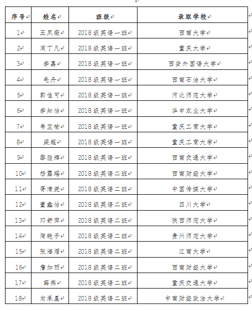 重庆工商大学2138CC太阳集团2022届考研学生名单