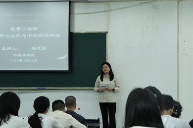 活动伊始,英语系主任李洪波教授隆重介绍了两位主讲嘉宾。毕业生刘磊学长首先进行分享。他结合自身成长经历,从三个方面给予学弟学妹建议:一是要好好学习专业知识,积极尝试大学生活的各种可能;二是要尽快树立人生根基,不要在乎别人的眼光,坚定地走自己的路;三是“不要因为犹豫而错失成长的机会”。随后,毕业生杨友莉学姐通过对比分析民营与合资企业的特点,为同学们剖析了不同企业形态下的职业发展路径。她指出,职业选择本质上是对个人成长路径的选择,再平凡的岗位也能成就不平凡的人生。杨学姐生动的职场案例分享,让同学们对不同企业环境有了更直观的认识。