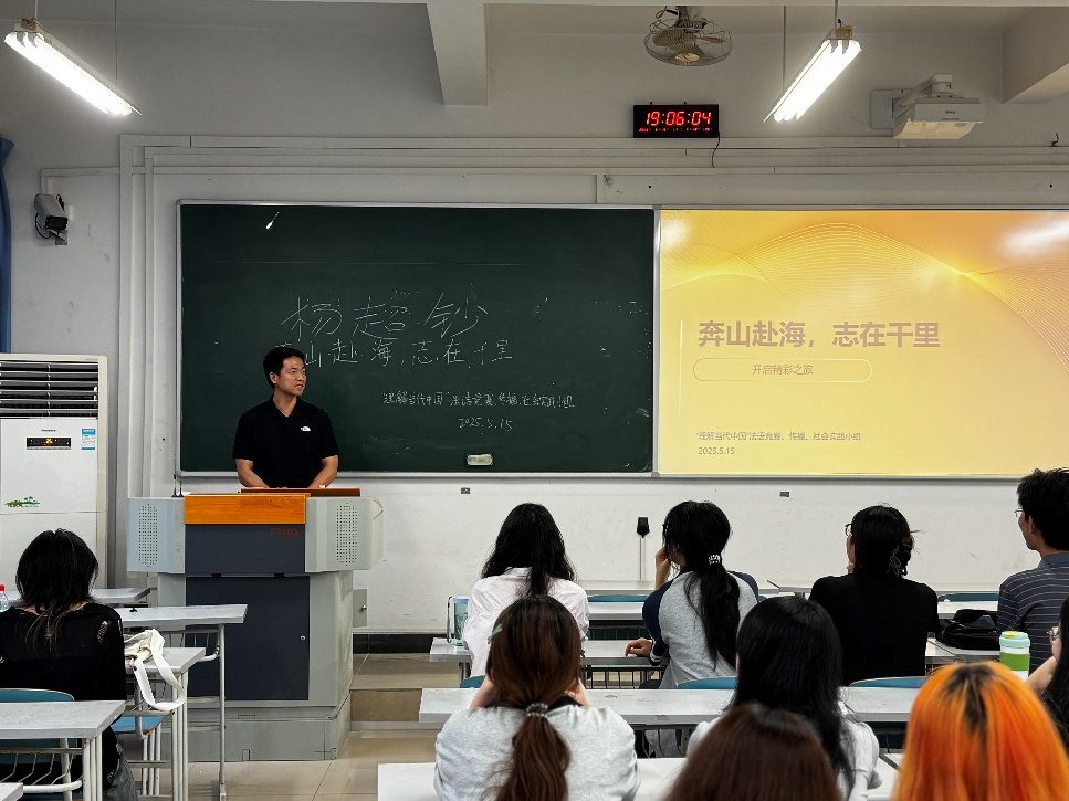 2025年5月15日,法语专业校友、华岗矿业股份有限公司金沙萨代表处行政助理杨超钞重返母校,在江北校区与法语系2024级新生展开面对面交流。
