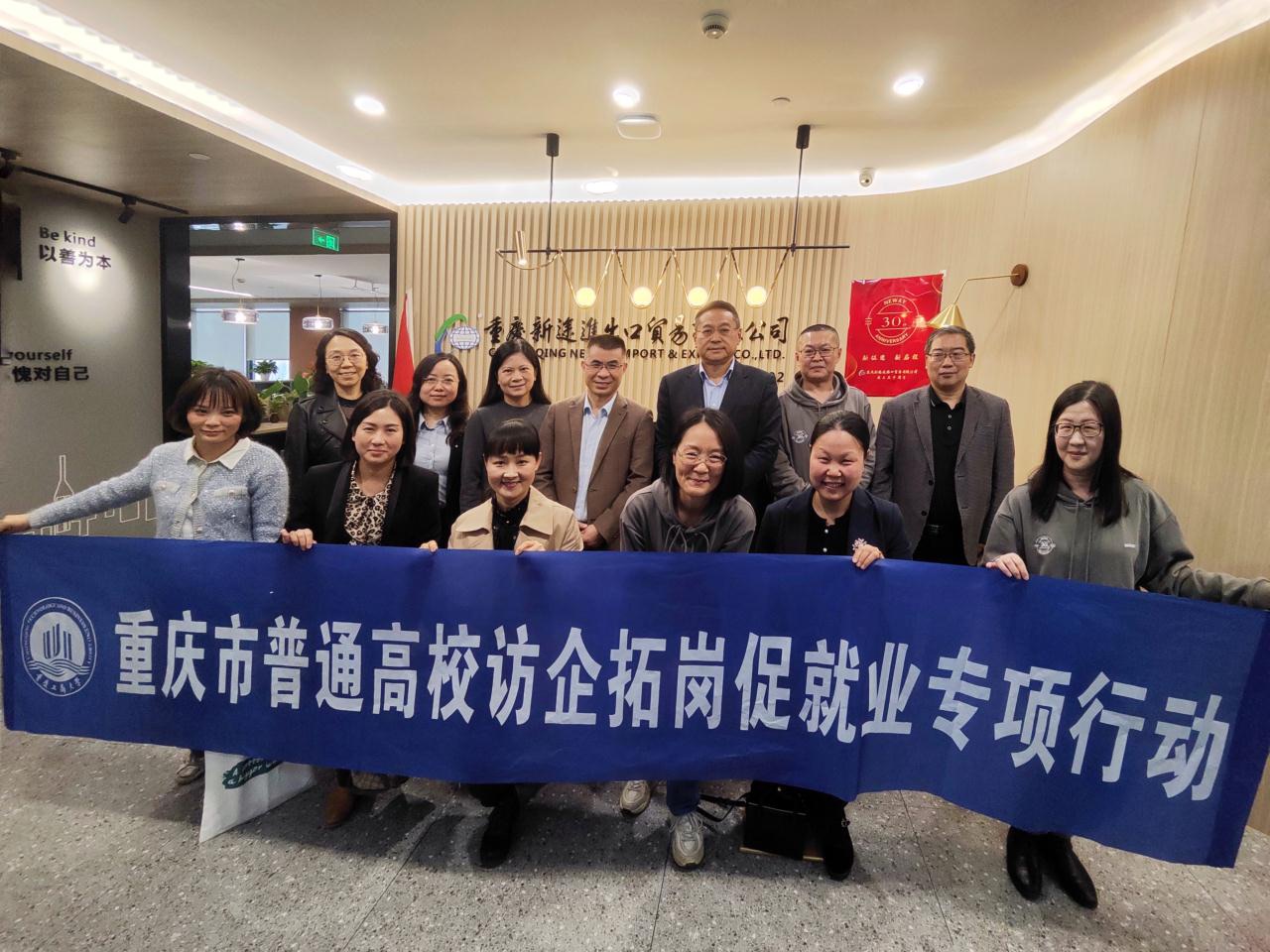 为深入贯彻落实“拓岗促就业专项行动”,充分挖掘企业资源,巩固拓展就业渠道,2022年4月15日,副校长李敬带队走访了校友企业重庆新途进出口贸易有限公司、重庆新翔锋进出口贸易有限公司。校人事处副处长潘焱、2138CC太阳集团班子成员唐春秋、周琳、吴欢欢、邹莉,学院就业联络员黄颖婕等陪同调研走访。双方就学院人才培养、院企合作、毕业生就业、校庆工作等方面进行了深入交流。