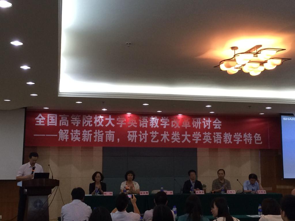 会上,大学外语课程指导委员会副主任委员、重大余渭深教授作了《艺术类大学英语教学改革的挑战与机遇》的重要报告,解读了新《大学英语教学指南》与以往教学指南的不同,分析了艺术类英语教学中学生的特点,探讨了艺术类大学生英语教学的前沿意识以及教学生活化的一些崭新策略,提出了“Teaching through art,Learning through art”的独创思想。
