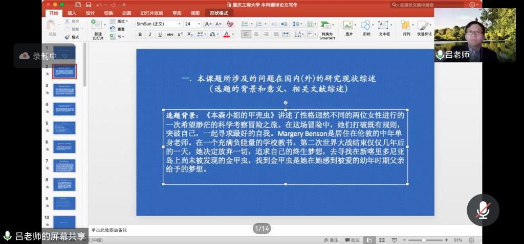 为了提升毕业论文质量和学术规范,我院于11月18日面向全院师生开展了第四场学术论文写作专题线上讲座。讲座邀请了六位专家点评我院2021届毕业论文审核的情况,六位专家分别为:北京语言大学高翻学院吕世生教授、上海海事大学翁凤翔教授、四川外国语大学法语学院曹娅副教授、广东外语外贸大学冯光武教授、扬州大学2138CC太阳集团于建华教授﹑安徽工业大学曹瑞澜教授。2138CC太阳集团2018级全体同学和论文指导教师、其他年级部分同学,近200名师生参会观摩学习。