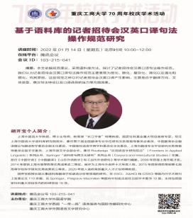讲座题目:《 基于语料库的记者招待会汉英口译句法操作规范研究》