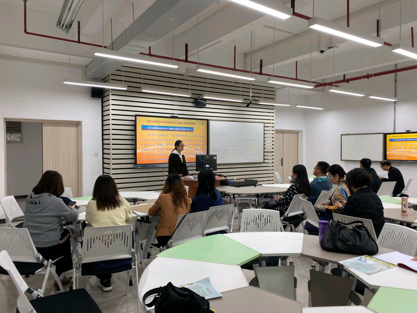 教工一支部成员在涵智楼1217会议室聆听了党支部书记邹莉老师主讲的题为《中华民族伟大复兴为什么不可逆转》的专题党课。邹莉老师从根本政治保证、动力源泉、理论指导、制度保证、物质基础和文化支撑等六个方面详细阐释了中华民族伟大复兴为什么不可逆转,希望支部全体党员响应党中央的伟大号召,坚定理想信念,不忘立德树人初心,牢记为党育人为国育才使命,为学校和学院的发展作出新的更大贡献。