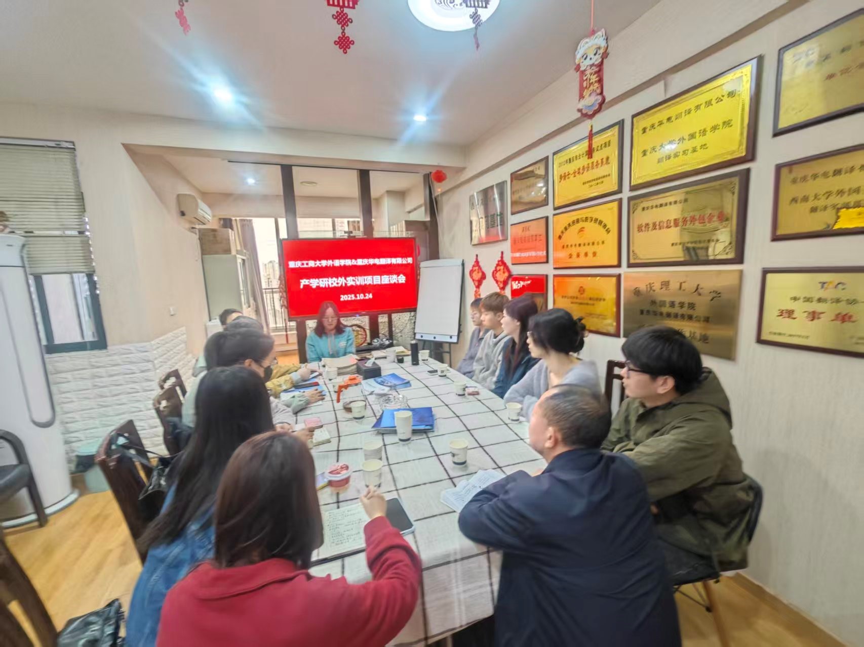 10月24日,我院2024级翻译硕士研究生在MTI中心主任李洪波教授带领下,前往重庆华电翻译有限公司开展移动课堂教学及访企拓岗活动。本次活动以“近距离感知翻译行业实战场景、明晰职业发展方向”为核心,旨在通过企业分享、答疑互动与总结交流,让学子们深度了解专业翻译在多领域的应用,为未来职业发展筑牢基础。